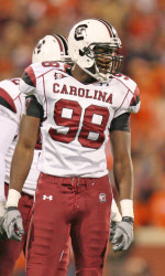 08/26/2011: If Devin Taylor works out well at the NFL Scouting combine I could see him being a top 10 pick in the 2012 NFL Draft. I currently have him falling into the 20s in my 2012 NFL Mock Draft because he hasn’t proven yet that he should be a top 10 pick. However, with a 6’7” frame and sub 4.7 40 speed I think he could be extremely disruptive. Additionally with that frame and size he would have the ability to not only play Defensive End in the NFL but also be a rush linebacker with a quick first step. He could very well play Rush Linebacker at his current height and weight if he continues to show that he can move well like a linebacker. If he goes to a team that plays a 4-3 in the 2012 NFL Draft he is most likely going to need to put on some weight. He is 6’7” and only 250 lbs so he could put on another 20-30 lbs easily with the his height. All in all I think Devin Taylor has the ability to be an elite talent in this 2012 NFL Draft and the 2012 NFL Mock Draft.